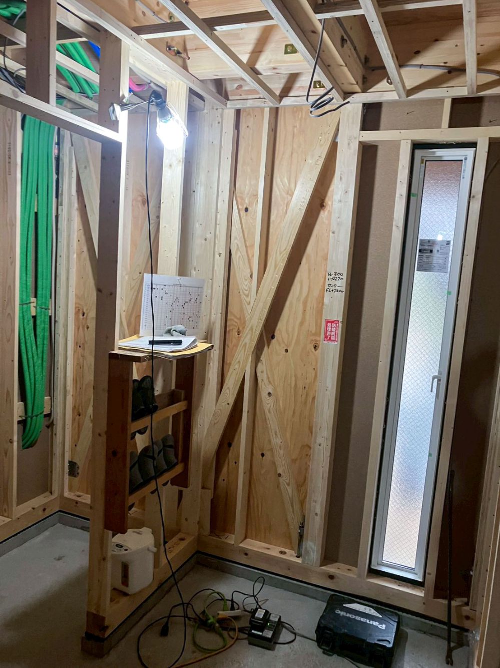 内部では電気、水道などのライフラインとなる、配線・配管の仕込み…通称「逃げ」が行われました。