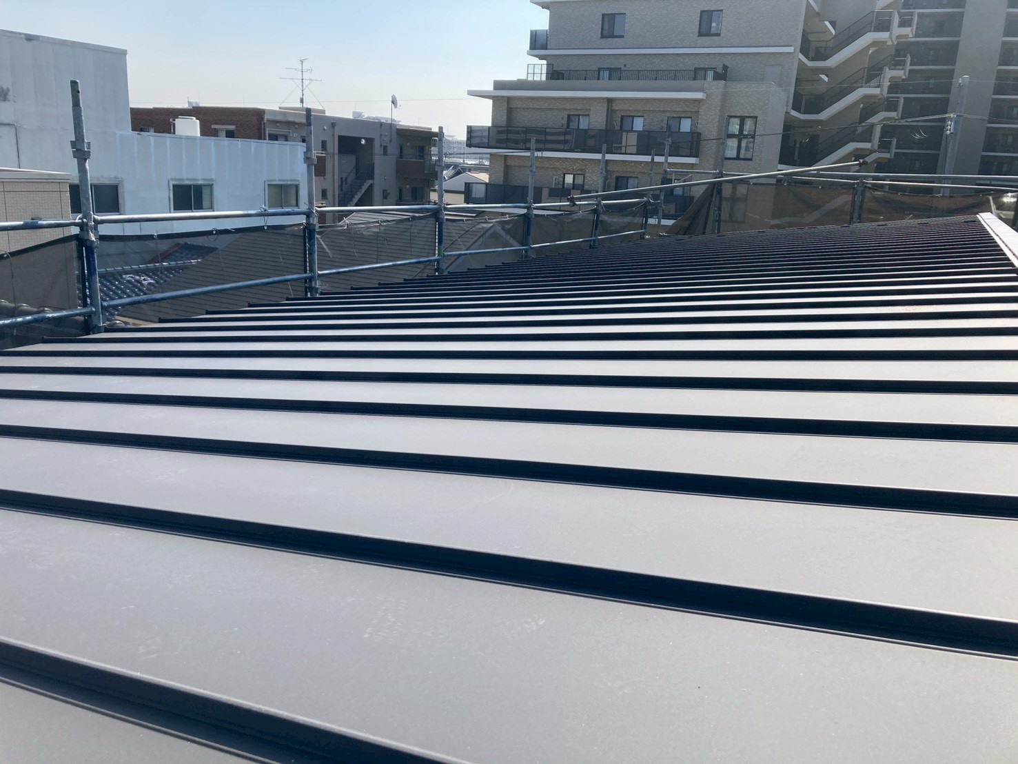ルーフィングを貼った後は、いよいよガルバリウム鋼板の施工です!