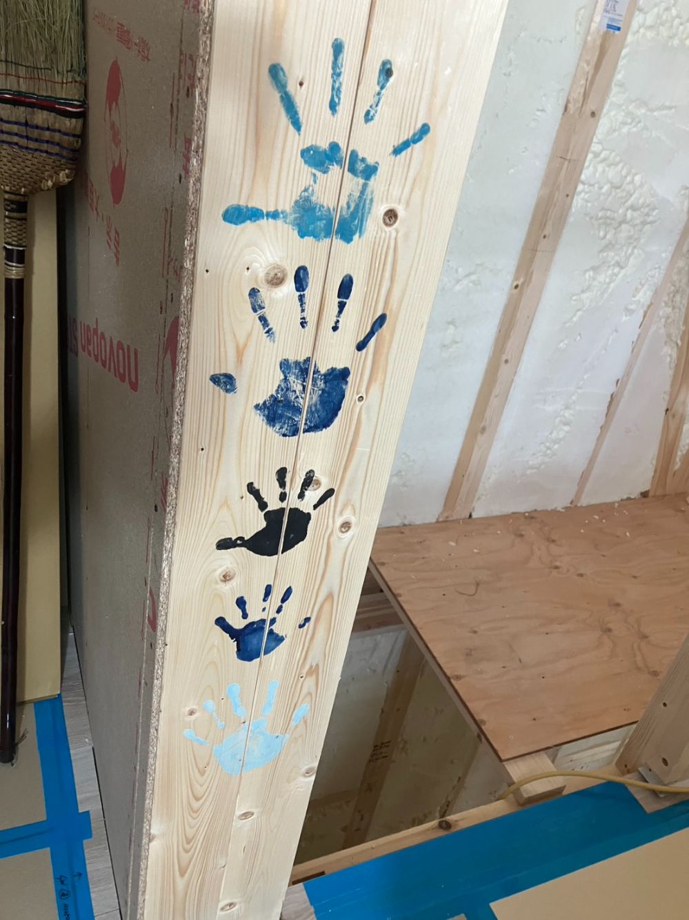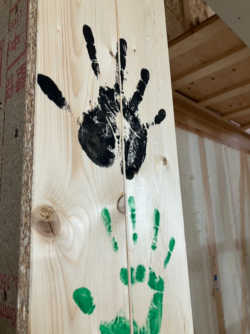 2階LDKの柱に、ご家族皆さんで手形を押してくれました!