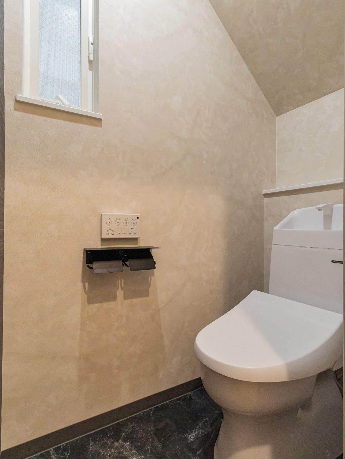 境界線の薄れたスリット窓から差し込む光は、見た目以上の奥行きを感じさせます。