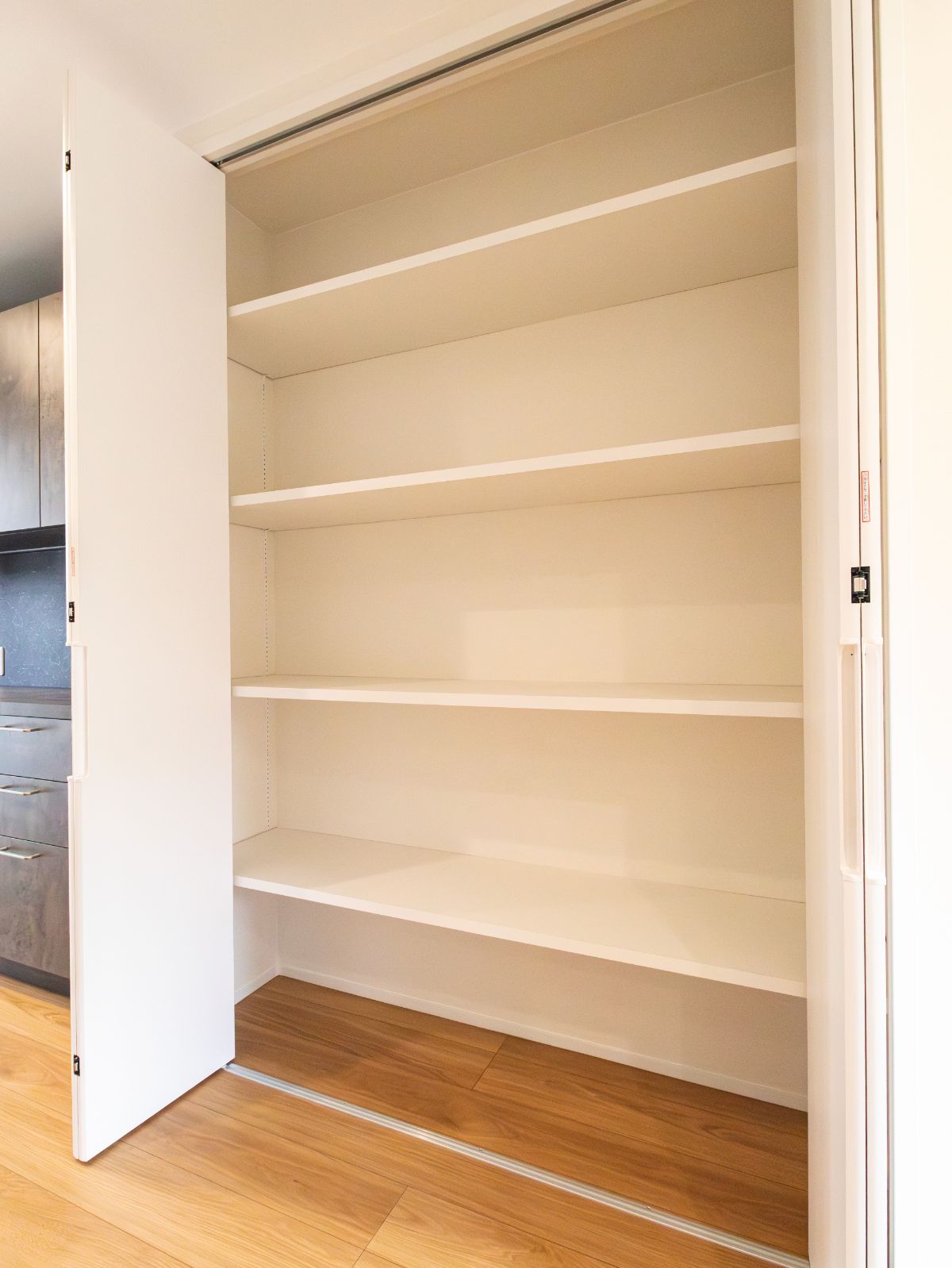 収納するものに合わせて、棚の位置を自在に変えられます。