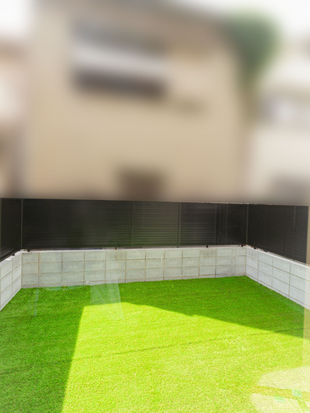 テラスには人工芝を設置。