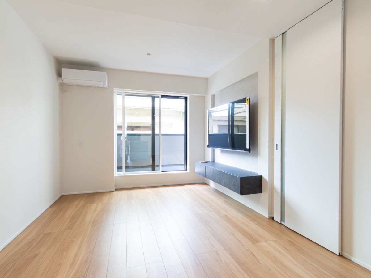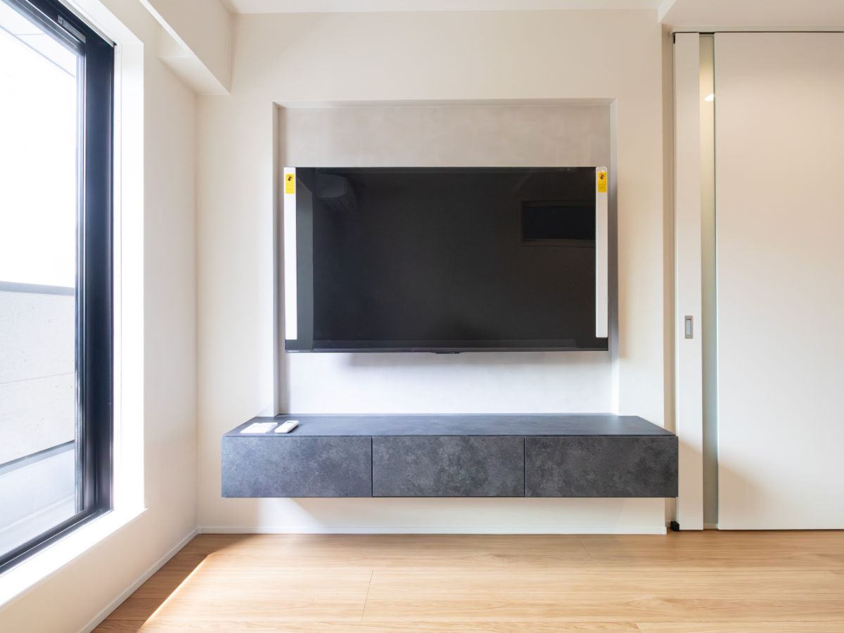 配線が隠せてすっきりとして見える他、フロートタイプのテレビボードを採用したことで、