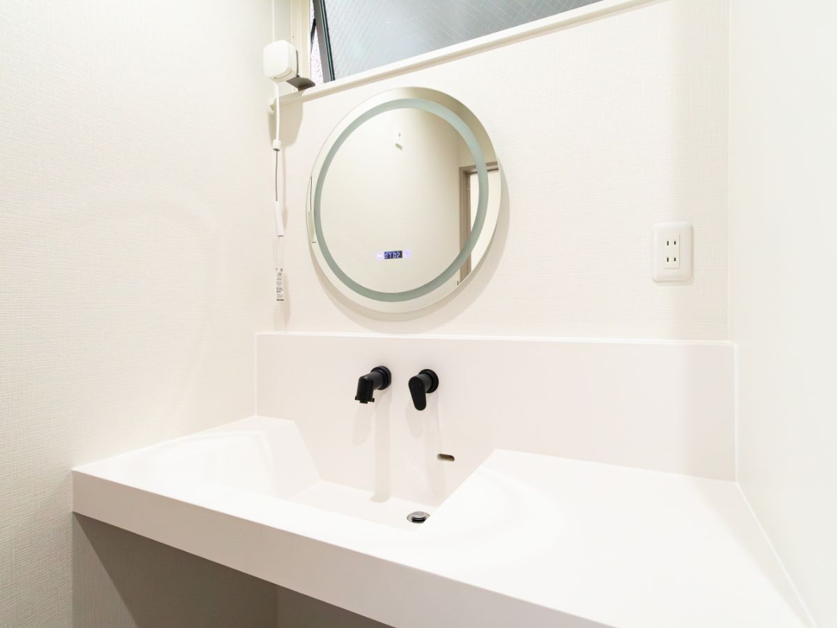 洗面台はミラタップのエルフォルムを採用。